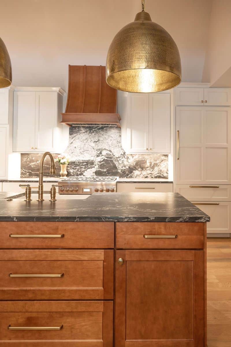 The approach centered on honoring the home’s traditional roots while thoughtfully introducing French country elements he loved. By opening the floor plan, the kitchen and living areas were reworked to feel more connected and functional for everyday family life. Custom built-ins were designed to flank the fireplace, creating meaningful storage for his mother’s books and decor while preserving the heart of the home. A larger pantry was added to support her love of cooking, ensuring the renovation didn’t just look better but truly worked better for the entire family.